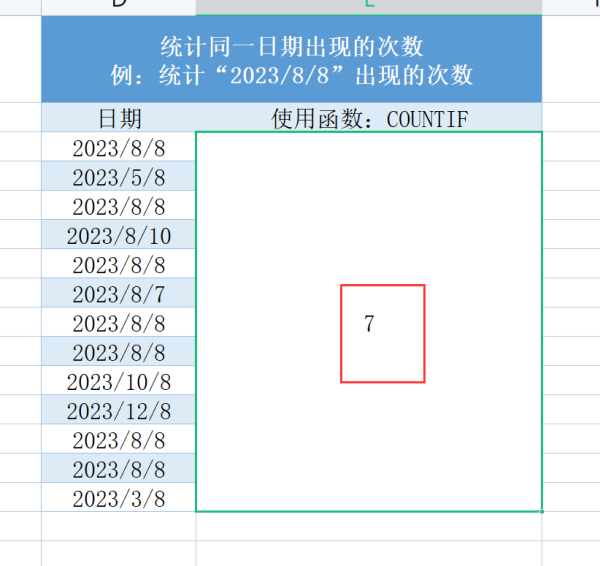 4. 这样“2023/8/8”出现的次数就统计出来的。如下图: