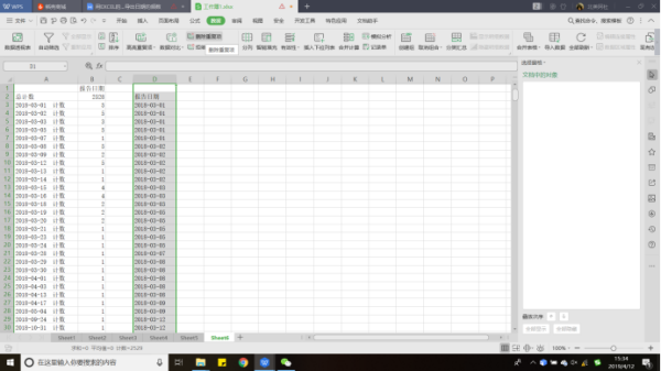 调整一下列的位置关系,日期和频数,就可以完美匹配了