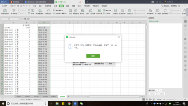 再选取“删除重复项”,删掉原始数值中的重复的日期。