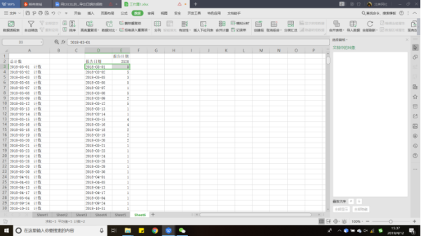 我用的是WPS表格的“分类汇总”导出日期的频数,已经实践过,EXCEL与此类似,也可参照下面的路径完美解决。