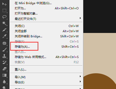 三、在弹出的下拉菜单内点击“存储为”,也可以使用快捷键Ctrl+Alt+S键。