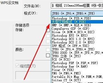 四、如下图,前两个就是psd和大型文档格式psb,根据当前文件高宽大小,选择保存的格式,最后点击保存即可。