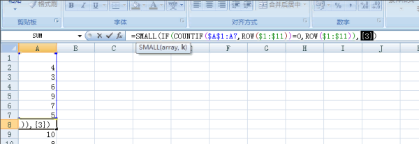 然后按下Ctrl+Shift+Enter三键结束数组公式。