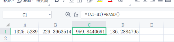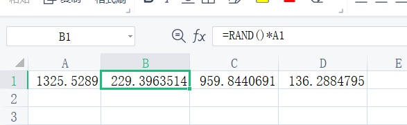 用随机分布函数0-1之间随机取数,B1然后和1325.5289乘积,C1为保证不超过1325.5289,所以用1325.5289-B1然后再和随机数乘积,D1最简单,直接就是1325.5289-B1-C1