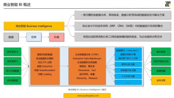 企业通过引入互联网、物联网、云计算、人工智能等新一代数字化相关技术,可以对已有的产品和服务进行数字化改造,大幅缩短研发、规划、供应、制造和生产等流程,缩减人员及运转成本。还可以通过业务系统和商业智能BI,沉淀企业业务数据,并通过数据仓库对数据进行ETL和模型处理,提升数据质量,发挥数据价值。