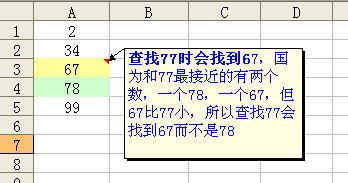 2、模糊查找的原理是:给一定个数,它会找到和它最接近,但比它小的那个数。详见下图说明。