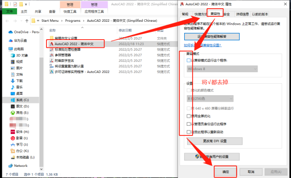 2、在CAD快捷键上右键——属性——兼容性——把√都去掉;