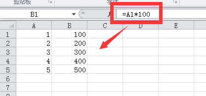 假设表格如下,B列数字为对应A列数字乘以100的得数,要将公式中的数字100替换成50。