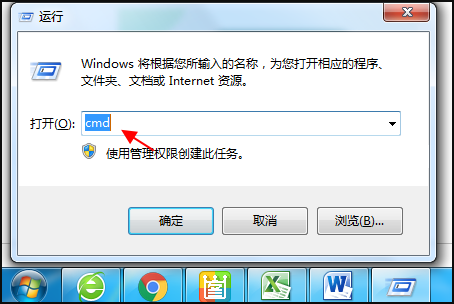2、然后在运行的小窗口中,点击输入框,键入“cmd”,按下enter键。
