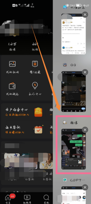 1、首先在微信多任务窗口点击【微信】如下图所示: