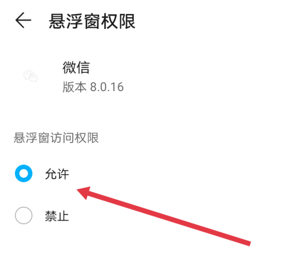 6、最后点击【允许】就可以开启微信悬浮窗访问权限了。