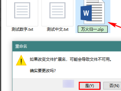 1、首先,在要打开的 docx 文档上右击鼠标,将其扩展名由 docx 更改为 zip。在更改扩展名时,会弹出一个警告提示框,这时请点击“是”。