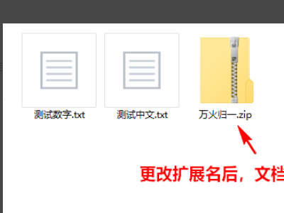 2、扩展名更改成功后,该文档会变在一个压缩包一样的图标。