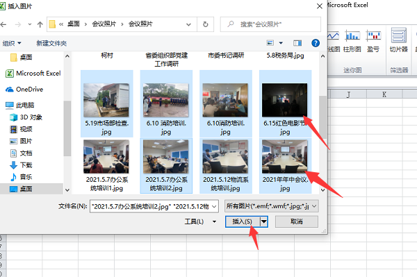 4、在打开的对话框中按住CTRL键,选择多个相片,点击插入。