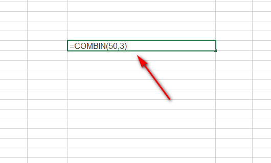 1、电脑打开Excel表格,输入组合函数=COMBIN(50,3)。
