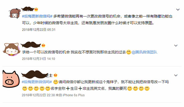 由于现在的社交软件都不允许重名,而微信作为用户量如此庞大的一款社交软件,普通的名字自然就很容易重合,这就出现了很多人在注册微信的时候都会随便输入一个微信名称,只要确保它不与他人的重复就行了。还有一部分人在注册微信号时,可能使用的是已经分手的恋人的名字或生日,更有甚者还使用的是非主流时期流行的一些话语,但是无论使用的是上述哪一种名字,现在看来都会懊悔不已,所以不少网友都希望微信可以给所有用户一次改名的机会,让他们可以拜托这些令人尴尬的微信名。