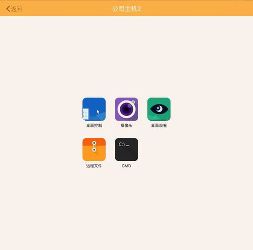 直接点击在线主机,看到功能界面,分别有桌面控制、摄像头、远程观看、远程文件、CMD等功能。