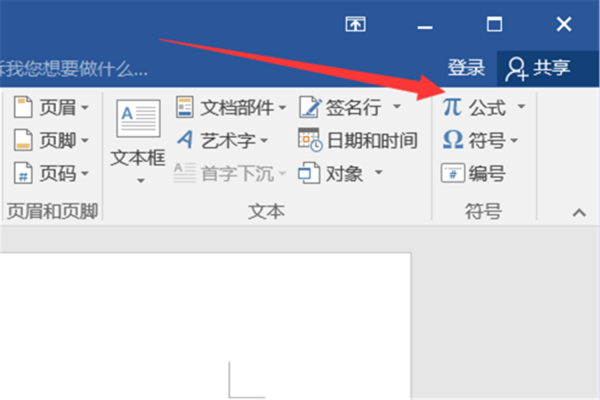 步骤二、点击“插入”标签的“公式”按钮,插入一个新的公式。