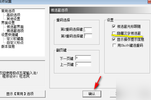 7、将隐藏汉字候选窗取消勾选,再输入汉字时就不会被隐藏。