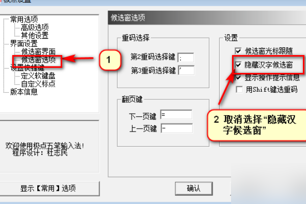 5.点击“候选窗口选项”,勾选“隐藏汉字候选窗口”。