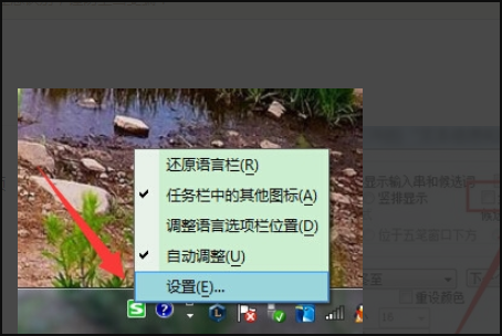 1.打开杆五划输入法,右键点击任务栏中的输入法图标,选择“设置?”.