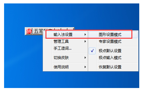 2、我们还可以在极点五笔输入法的状态栏上点击鼠标右键,然后在弹出的选项中打开“输入法设置”—“图形设置模式”;