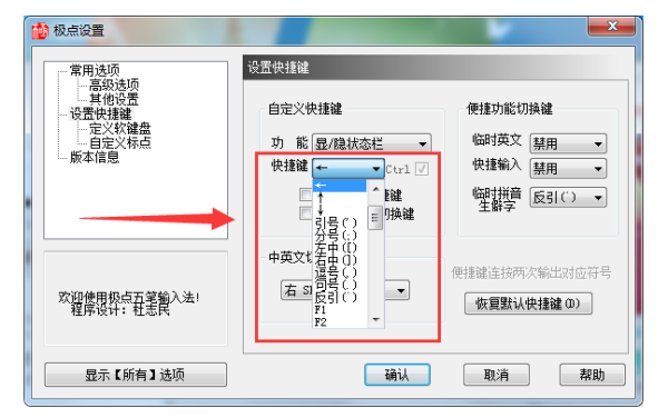 1、我们可以直接用快捷键“Ctrl+←(键盘上的左箭头)”就可以显示/隐藏极点五笔输入法的状态栏了;