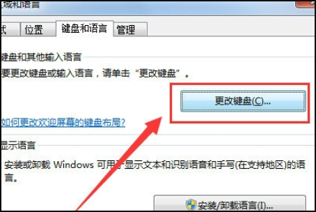 3、然后在打开的窗口中切换到“键盘和语音”选项卡,点击“更改键盘”按钮,此时将打开“输入法管理器”窗口。