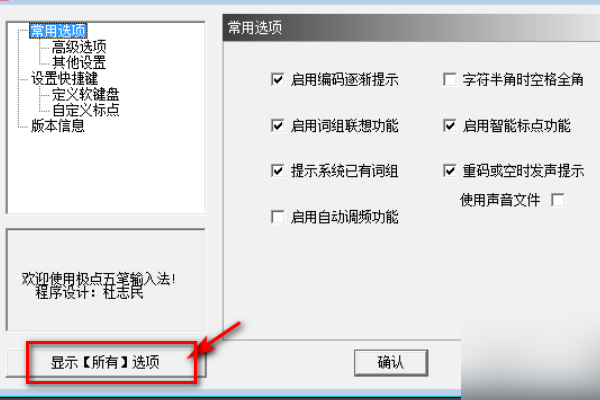 3.在弹出的对话框中,点击“显示[所有]选项”按钮。