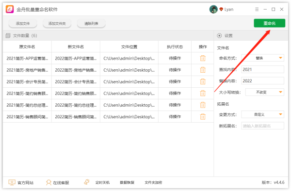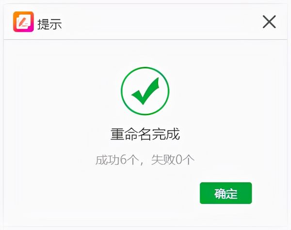 步骤3,点击右上角的【开始重命名】按钮,启动批量重命名操作。当弹出“重命名成功”的提示时说明处理成功了。