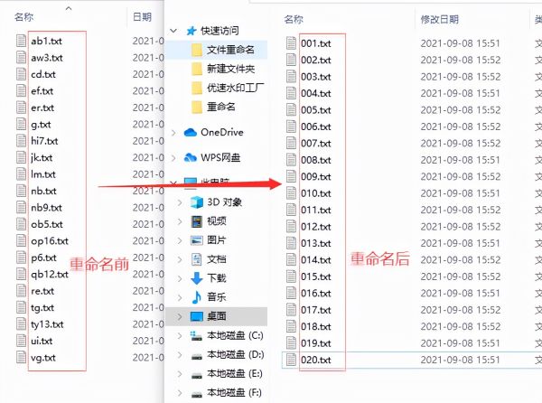 第4步,对比批量重命名前后的文件可以看出,批量重命名后的文件名整齐规范。