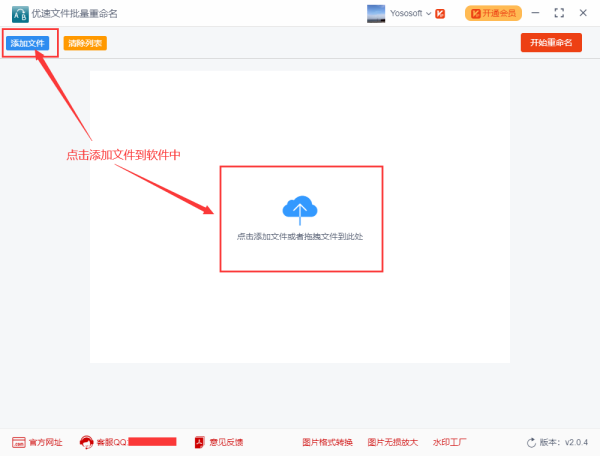 第1步,下载工具软件后安装打开,点击【添加文件】按钮,将需要重命名的文件全部添加到软件中,软件支持任何格式的文件进行重命名。