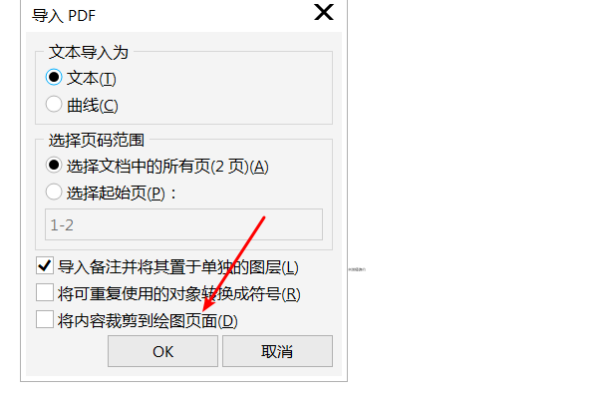 可以选择导入的文本类型,注意:如果在“导入注释并放置在单独的图层上”打勾,那么多页面的PDF就会在CDR里面是放在单独的图层上。