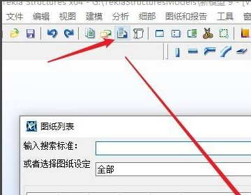 1、首先在打开的软件中,点击工具栏上面的图纸按钮,弹出图纸列表对话框。