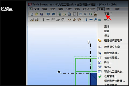 1、首先打开需要编辑的tekla文件进入到编辑页面中,点击打开主菜单栏中的“工具”。