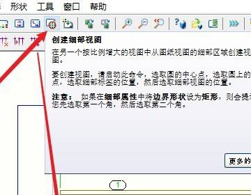 3、打开局部视图按钮,找到按钮,点击按钮,选择对象,圆圈内代表需要做局部图的区域。