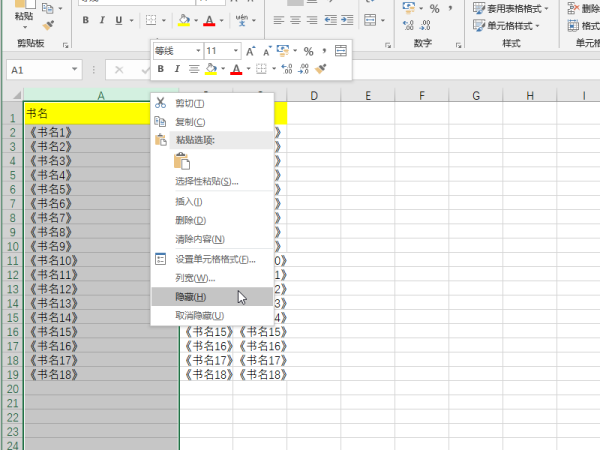 想显示全部隐藏的列,可将鼠标指向任一列表。