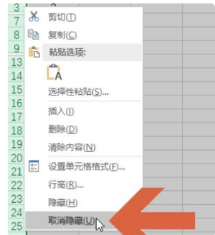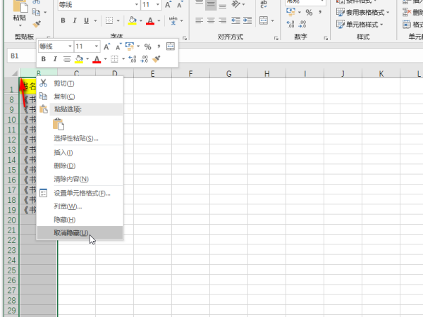 点击右键菜单中的【取消隐藏】,就会显示所有隐藏的列。