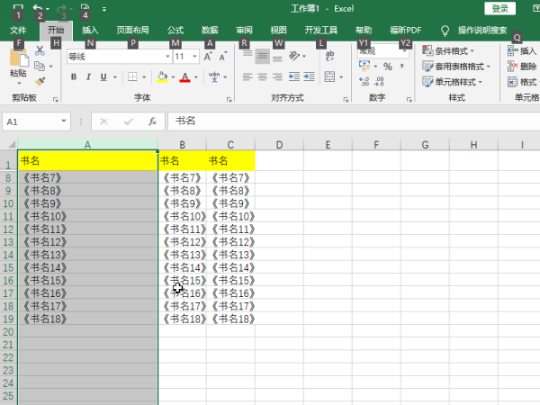 4、Ctrl+Shift+0 取消隐藏单元格或者区域所在的列
