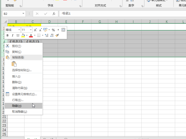 3、Ctrl+0 隐藏单元格或者区域所在的列
