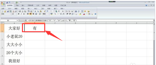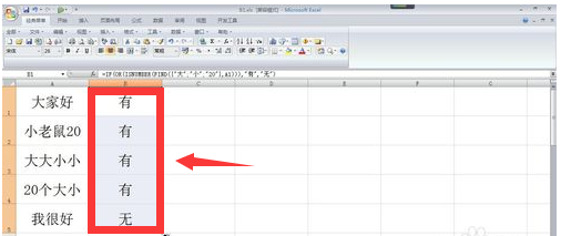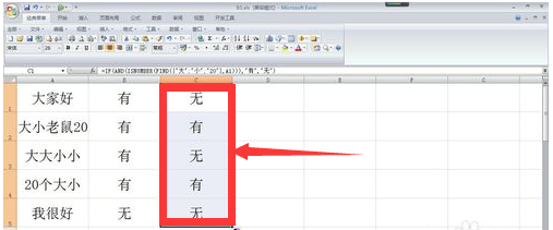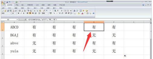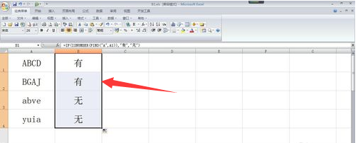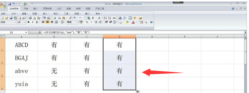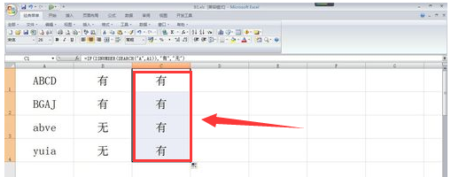 5,下拉公式会发现,只要包含这三个字符中的任意一个,结果都是有。