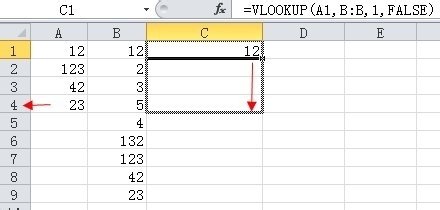 5.我们可以看到C列中都存在数据,说明A列在B列中都存在,如果不存在那么现实#value,就是无法显示的意思;