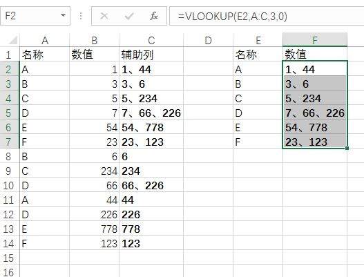 EXCEL表格中使用函数找出指定字符对应的所有数值