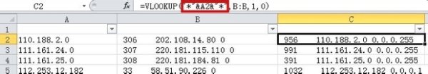 6.在模糊匹配的时候要用到*号,B列是12345678,A列是345,那么我们可以写成“*”&A&“*”,这个通配符来表示任意字符,只要包含即可。