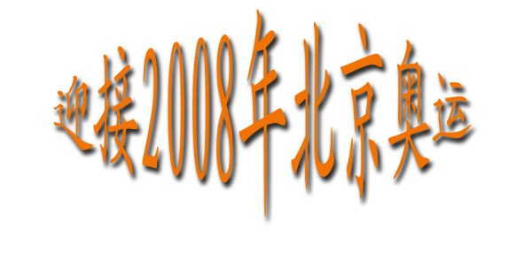 2、在文件上用文字工具的楷体字打上“迎接2008年北京奥运”几个字样,然后点鼠标右键,选择“文字变形”,在出来的窗口里,有个“样式”选项,将“样式”改为“凸起”,再在“水平”前面打勾,其他参数分别是“弯曲50%、水平扭曲0%、垂直扭曲0%“,这时文字就变形成如图一样的形状了;