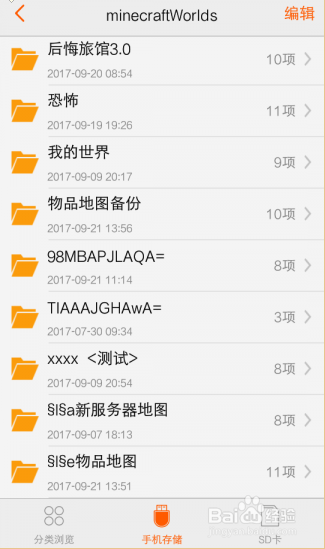 2、位置一般都是在:手机储存—games—com.mojang—minecraftWorlds
