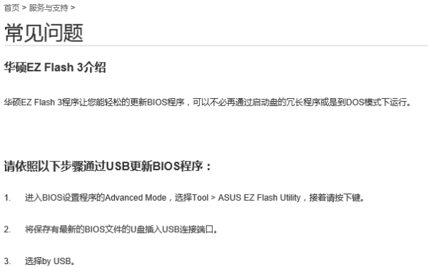 华硕主板可以在BIOS中,通过EZ Flash即可操作更新。相应的方法,可以在官网搜索下图中的说明来做参考。