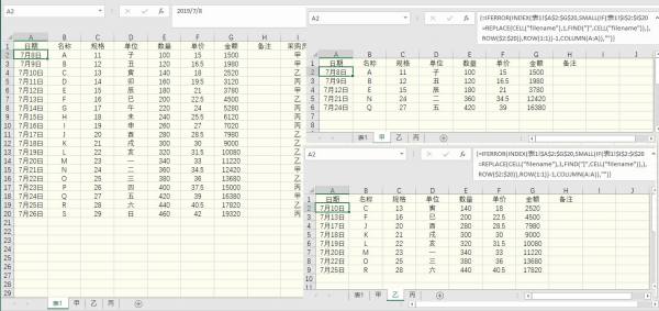 但本问题比较好的方法还是VBA,上面提供的公式虽可以把数据按要求提取出来,但因为cell函数得到工作表名称具有不稳定性,很多情况下切换工作表后,很可能会发现提取的数据不对,需要按F9重新计算后才能得到正确的结果。