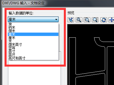 6、进入文件设定窗口,在左上角把输入数据的单位设置为毫米,在选择输入尺寸,然后在选中输入此图纸到2D草图点击完成按钮