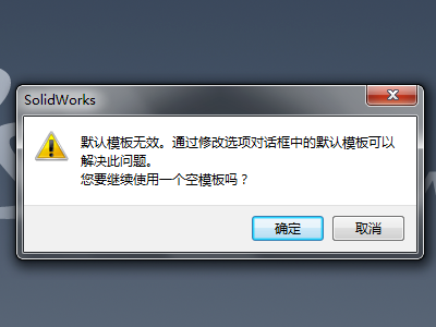 4、这时,solidworks会提示:是否使用空模板?选“是”就使用空模板,也可以选择“否”,然后自己指定一个模板。